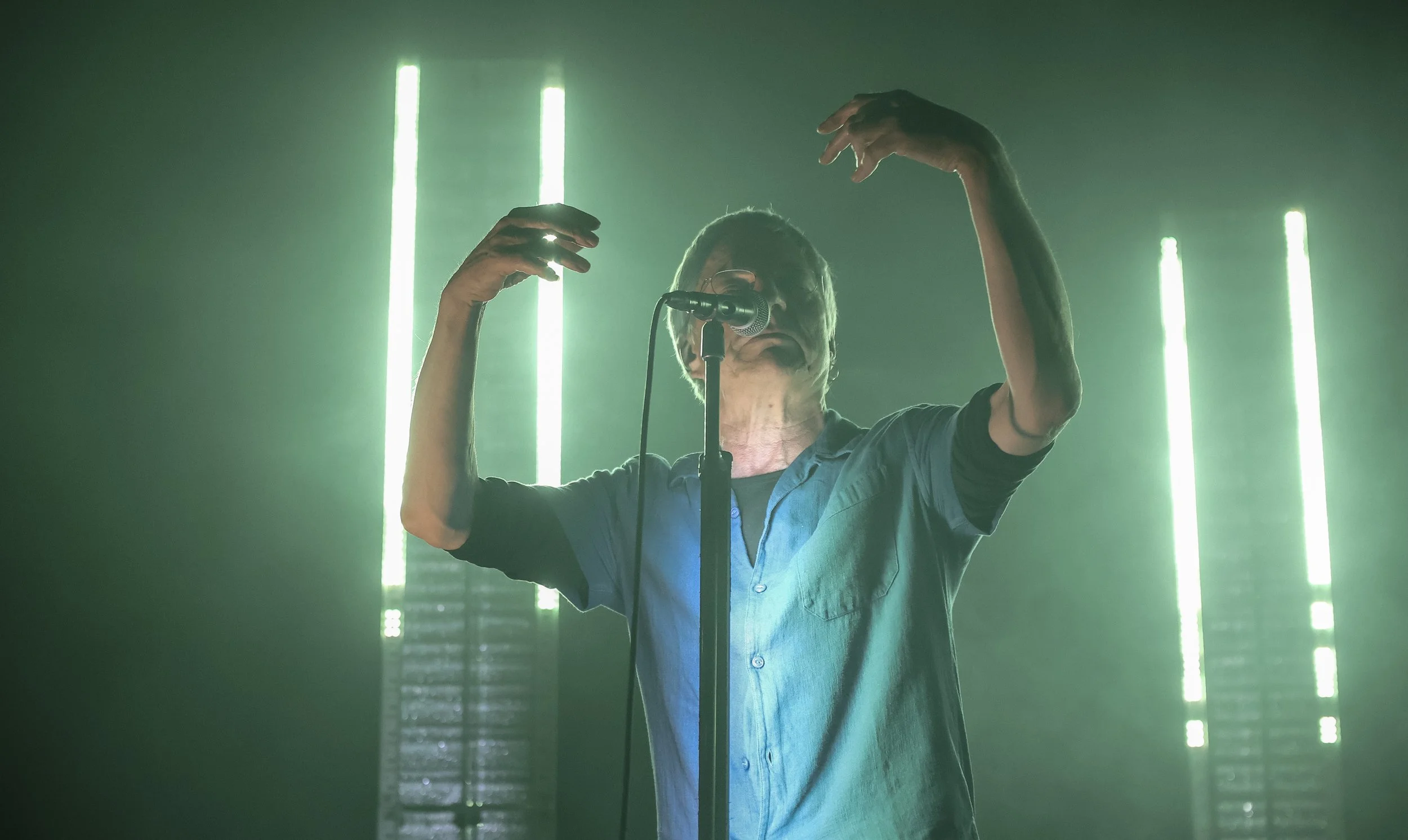 Anyway, we stepped out during the break to get ready for Young Gods. I should say upfront that I didn’t come fully prepared for this concert. I had listened to their latest album, Appear Disappear (2025), which I liked, and besides that I only really knew Only Heaven from 1995, which I loved and saw as their masterpiece. The rest I had only skimmed through. But like most people who first heard them under Kale, I wanted to experience this concert as an unexpected surprise.